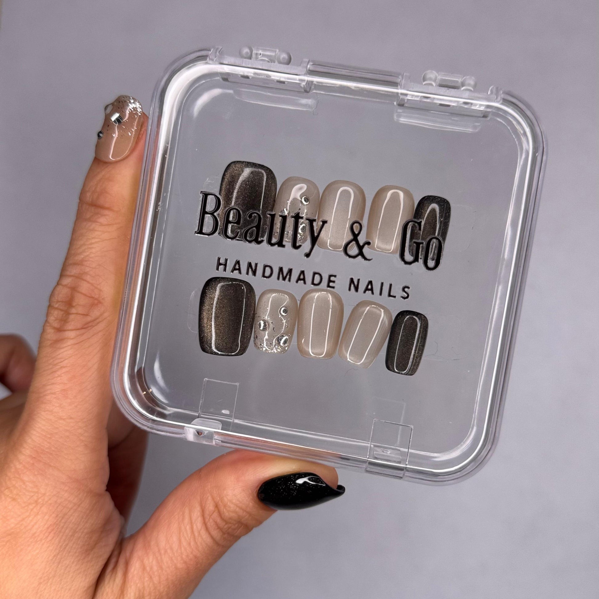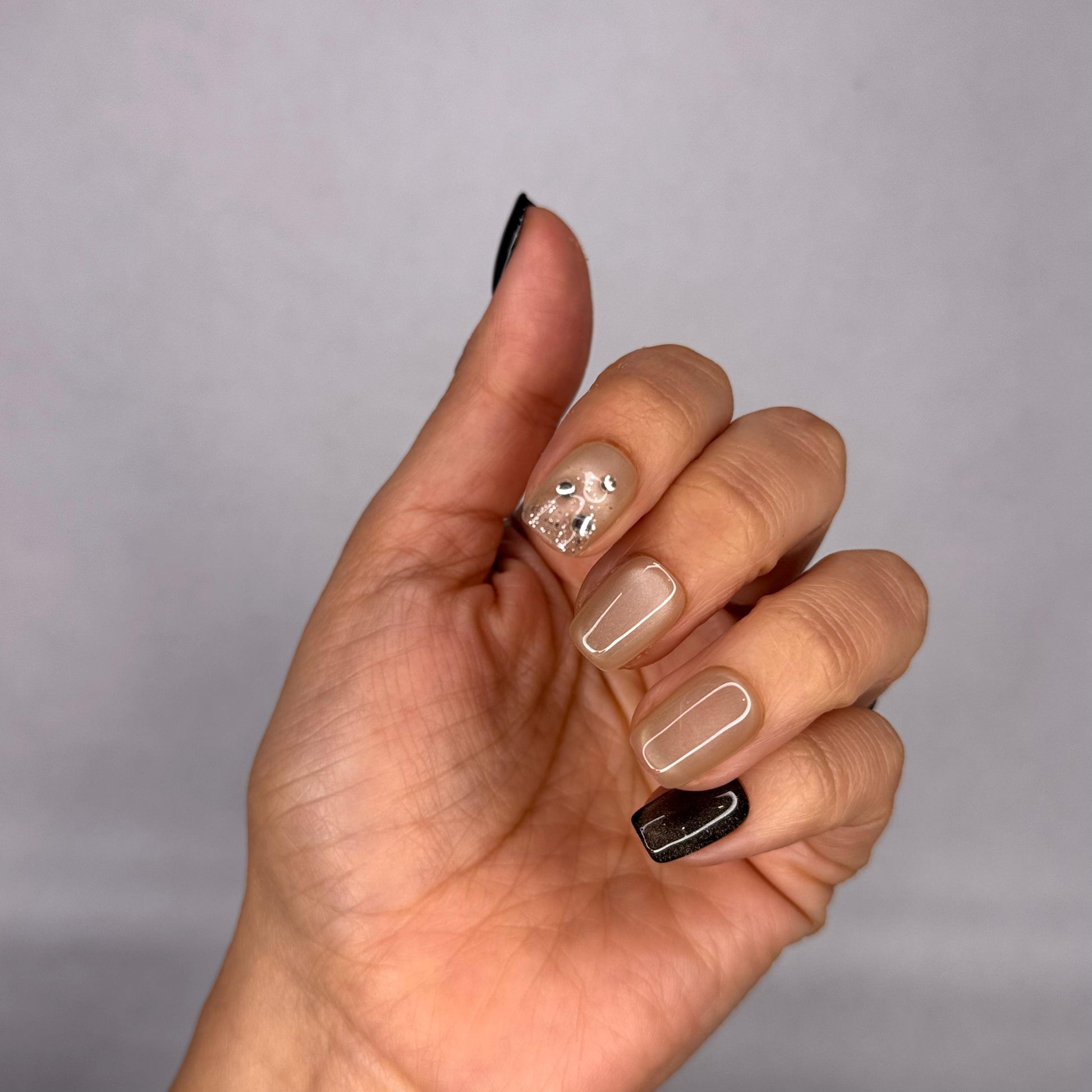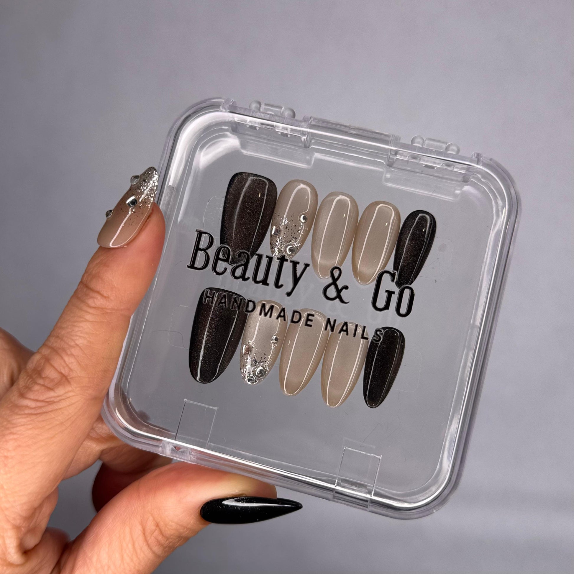 2. Pegar: Aplica una capa uniforme de pegamento en las uñas naturales y en la parte posterior de las uñas Beauty & Go.