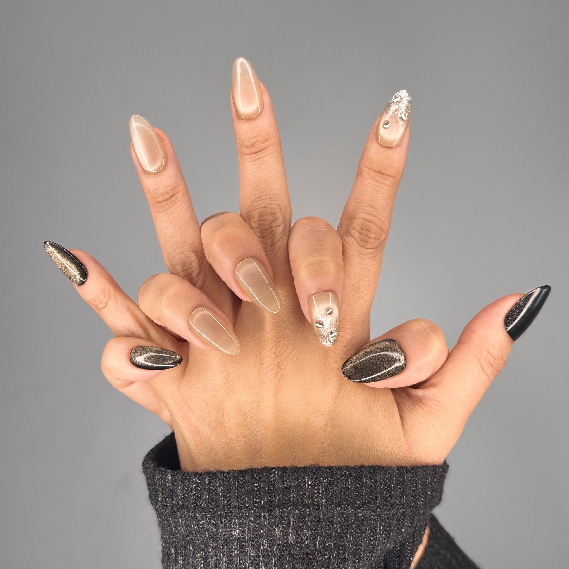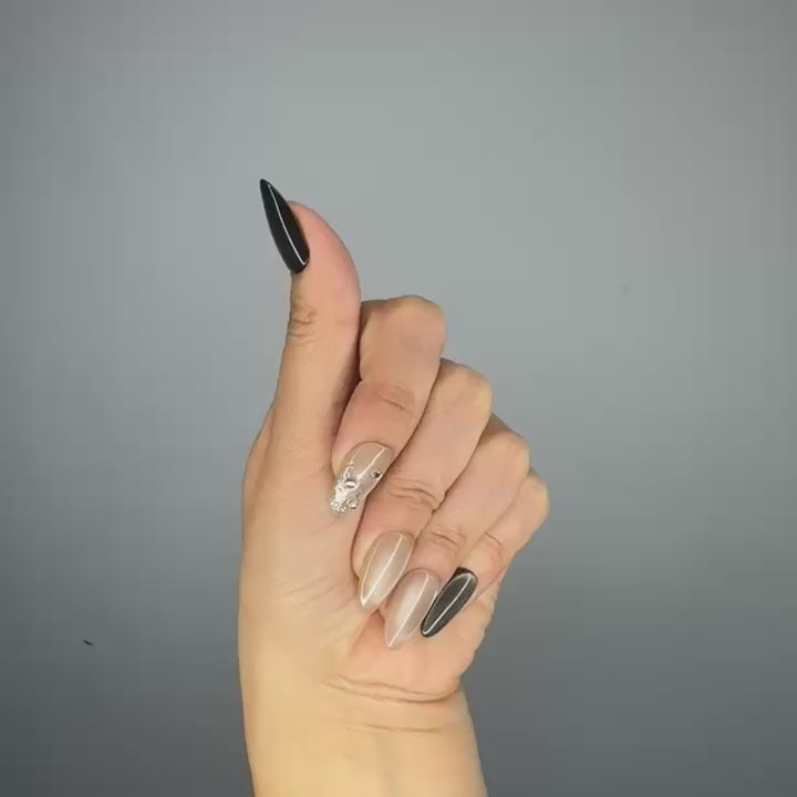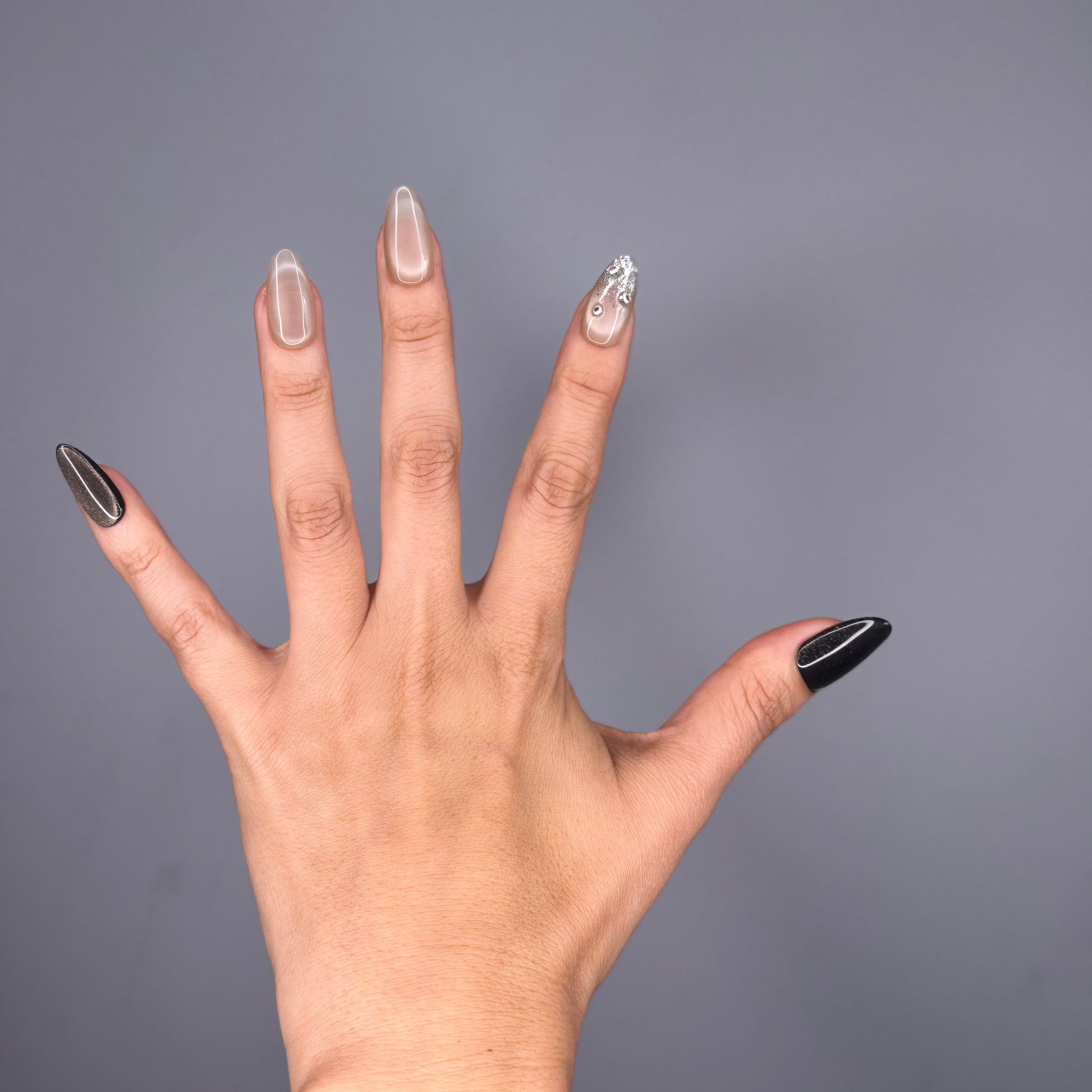 2. Pegar: Aplica una capa uniforme de pegamento en las uñas naturales y en la parte posterior de las uñas Beauty & Go.
