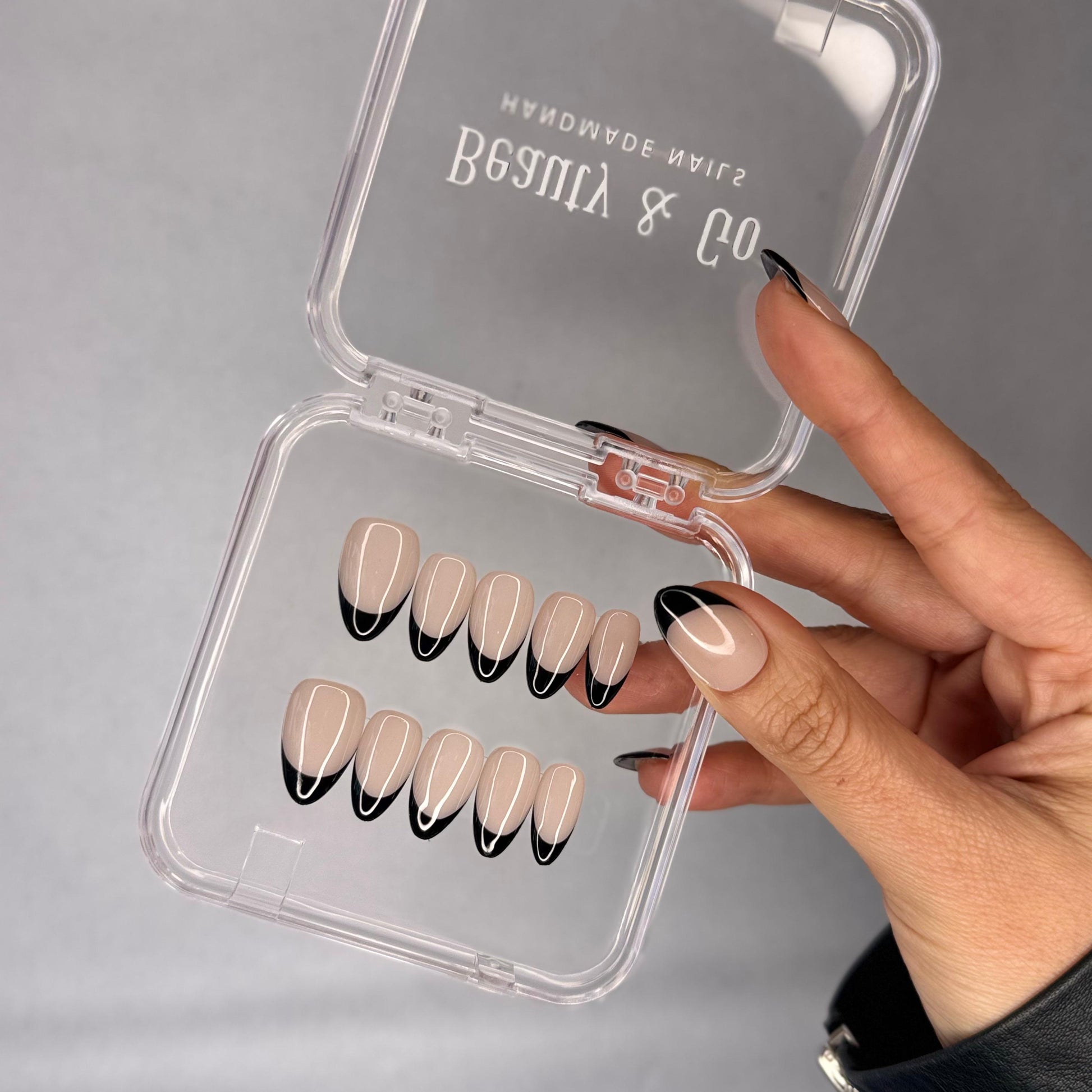2. Pegar: Aplica una capa uniforme de pegamento en las uñas naturales y en la parte posterior de las uñas Beauty & Go.