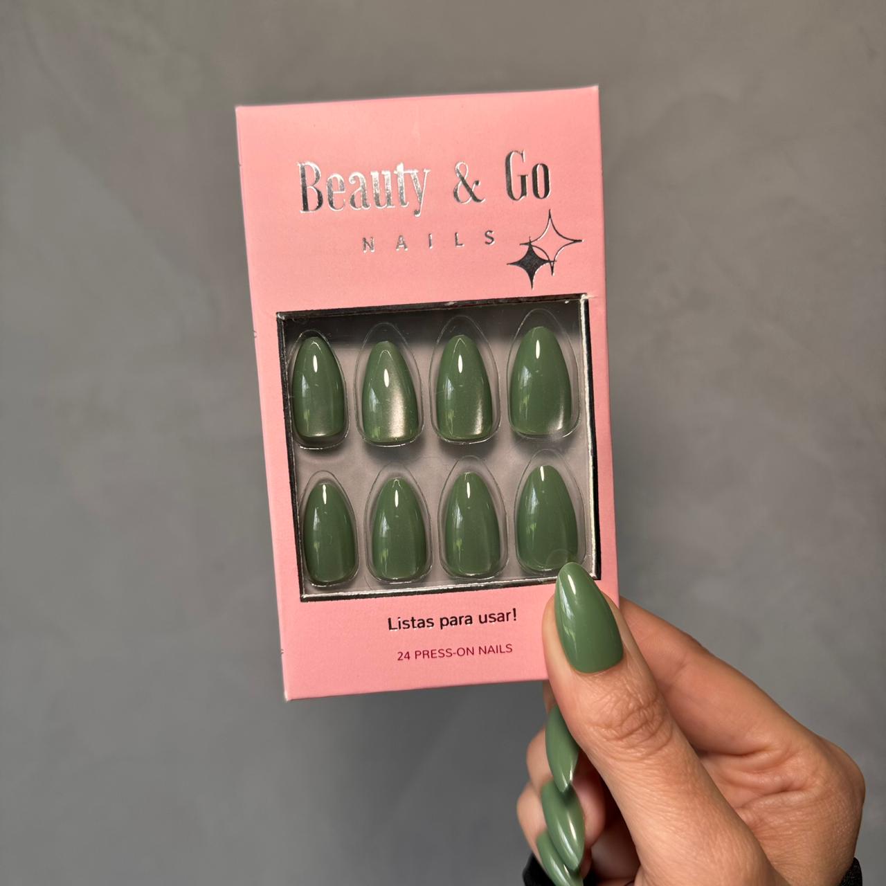 3. Pegar: Aplica una capa uniforme de pegamento en las uñas naturales y en la parte posterior de las uñas Beauty & Go.