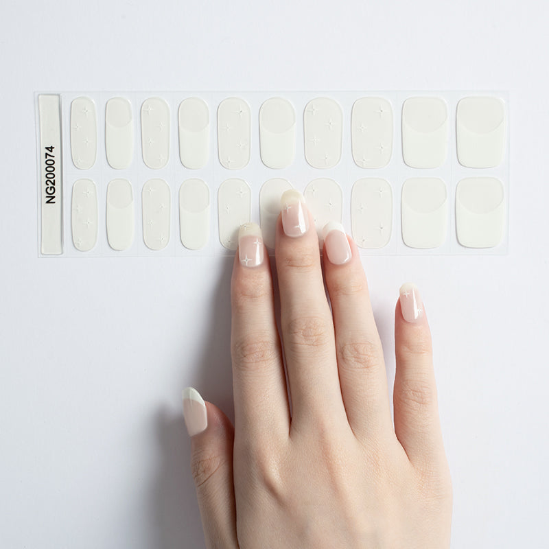 • El diseño French Star reinventa la clásica manicura francesa con un toque moderno y delicado. Combina una base nude traslúcida con puntas blancas y pequeñas estrellas blancas, logrando un estilo elegante y sutil. Con acabado gel brillante y resistente, estas uñas Geli Stick semicuradas se endurecen con lámpara LED o UV para un look pulido y duradero.
