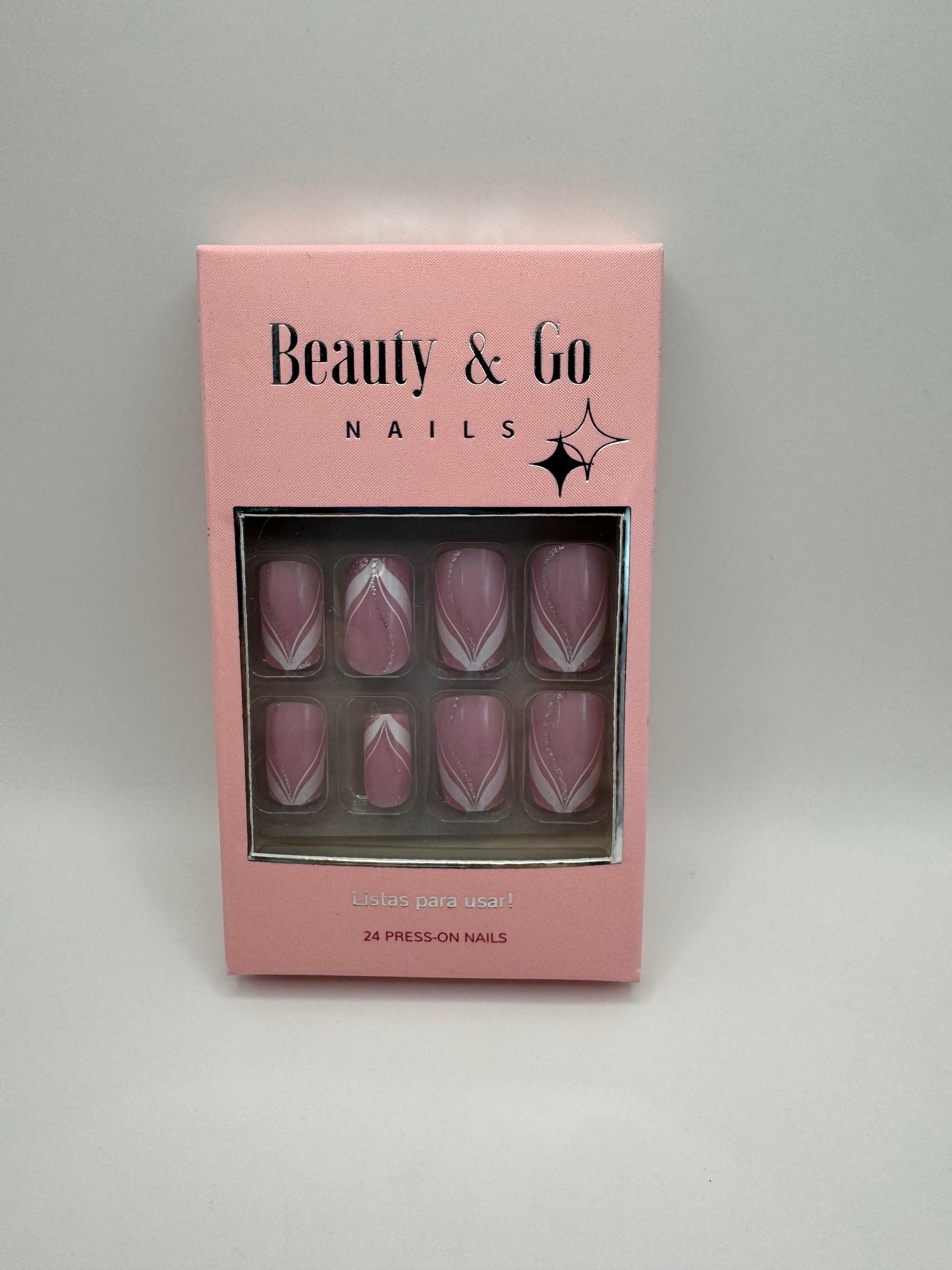 3. Pegar: Aplica una capa uniforme de pegamento en las uñas naturales y en la parte posterior de las uñas Beauty & Go.