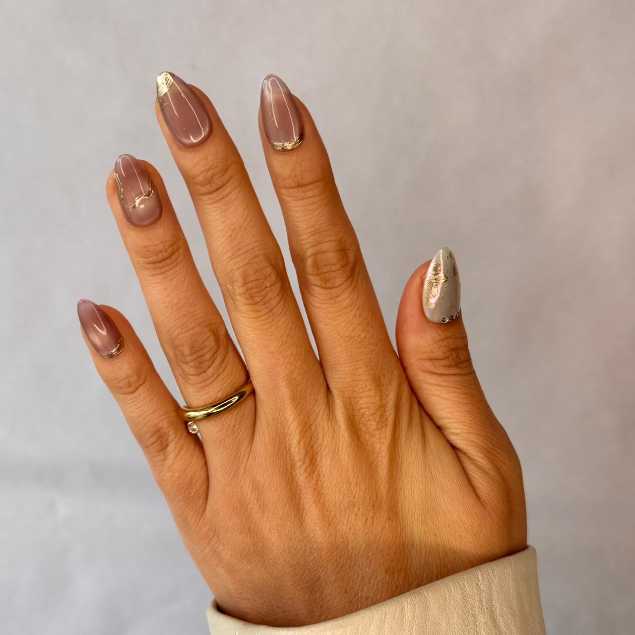 1. Preparar: Lima las uñas, empuja hacia atrás las cutículas con el palito de cutícula y limpia las uñas con el alcohol pad.