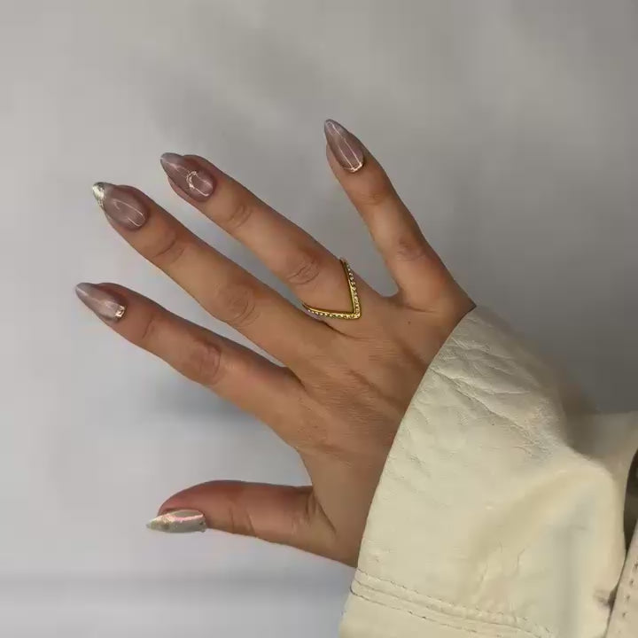 3. Presionar: Alinea con la línea de la cutícula y aplica en un ángulo descendente, luego presiona firmemente durante 20-30 segundos.