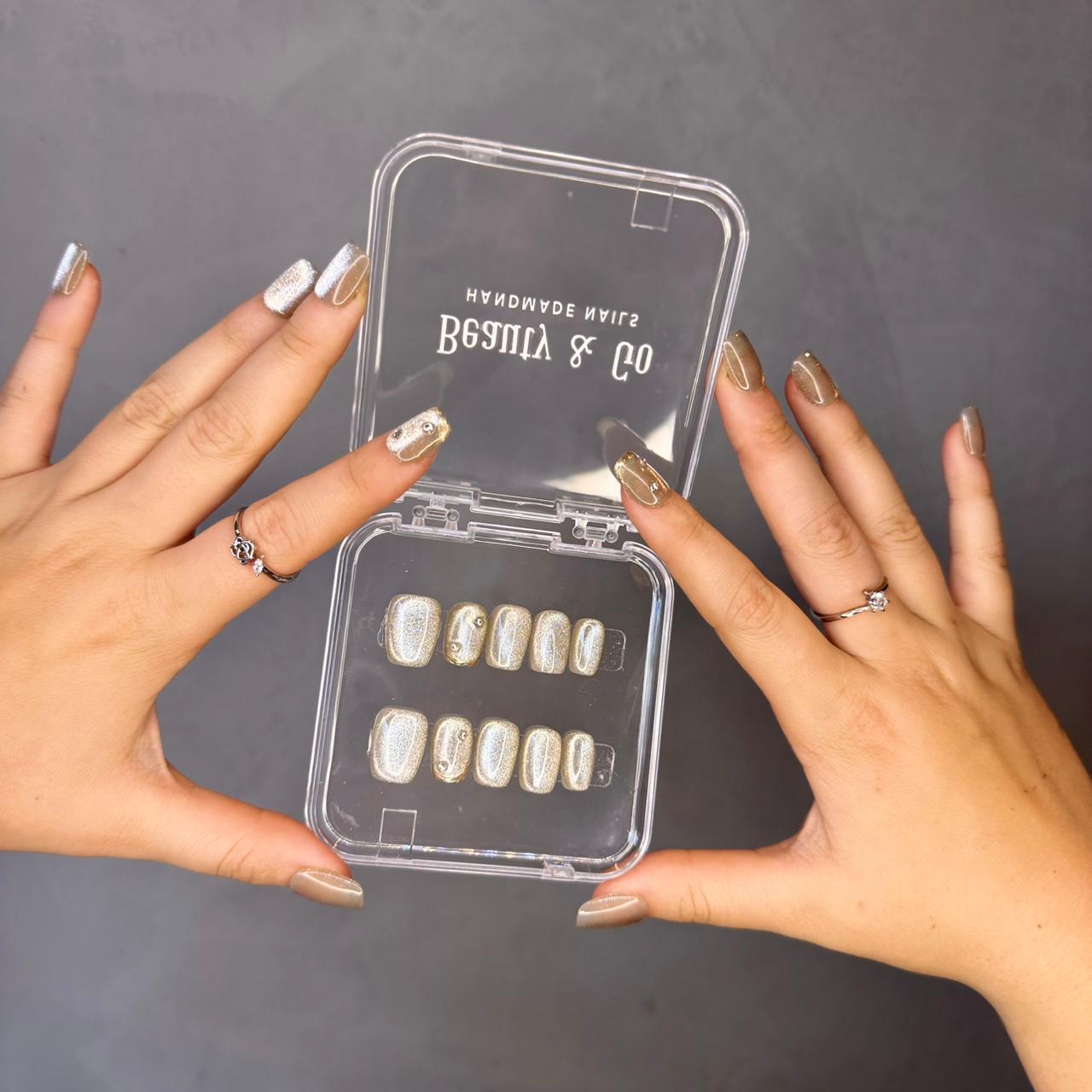 2. Aplicación con Pegamento de Uñas (Opcional): Aplica una capa uniforme de pegamento en las uñas naturales y en la parte posterior de las uñas Beauty & Go.