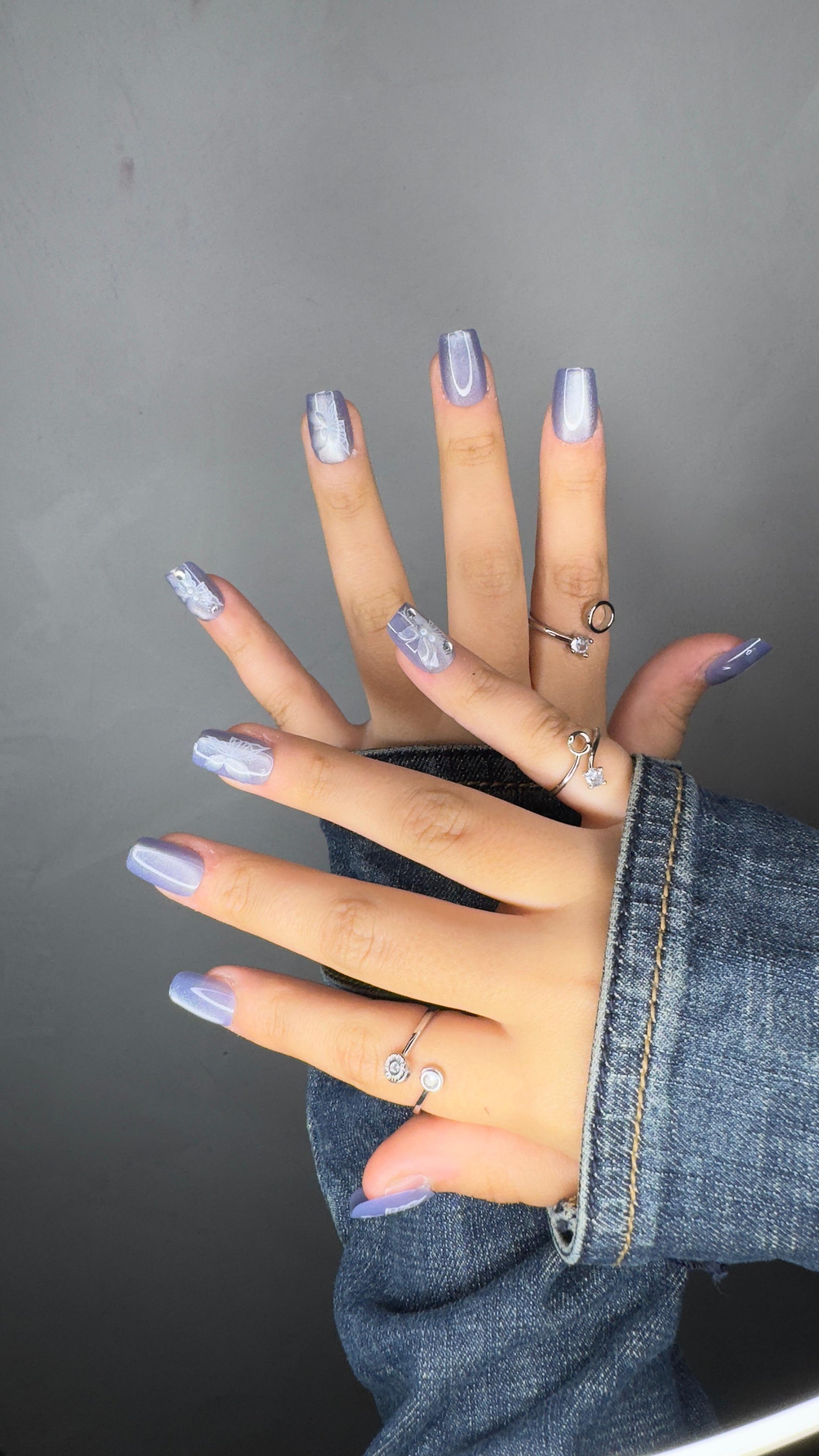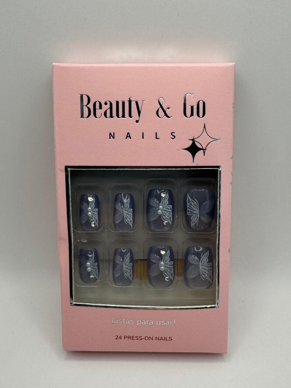3. Pegar: Aplica una capa uniforme de pegamento en las uñas naturales y en la parte posterior de las uñas Beauty & Go.