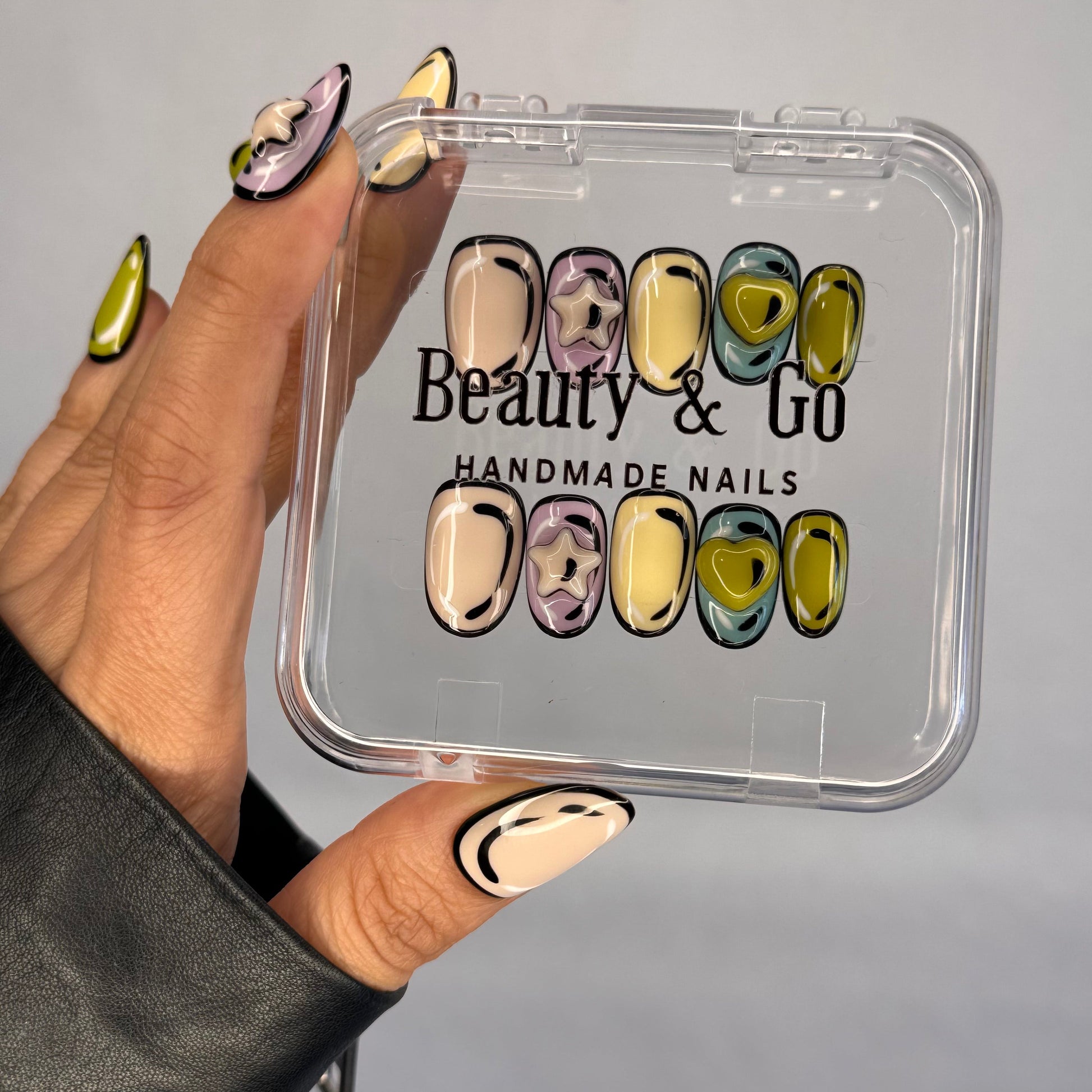 2. Aplicación con Pegamento de Uñas (Opcional): Aplica una capa uniforme de pegamento en las uñas naturales y en la parte posterior de las uñas Beauty & Go.