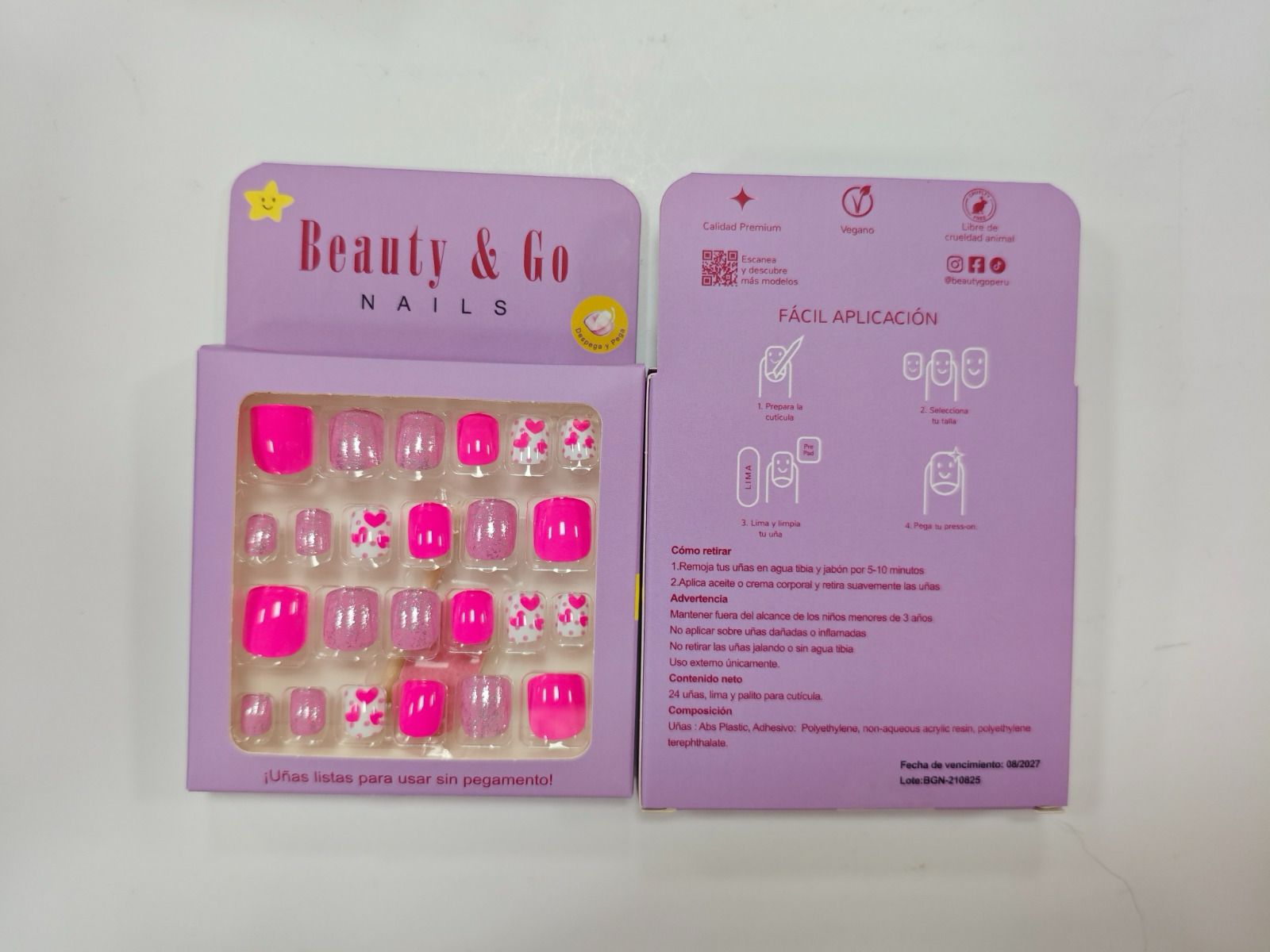 - 24 uñas con adhesivo incorporado.
