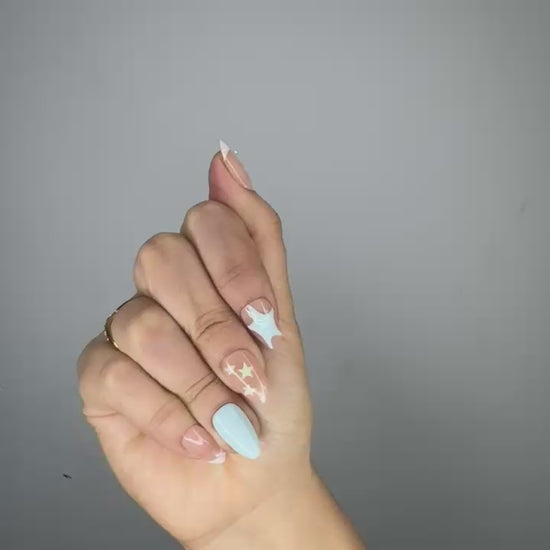 2. Pegar: Aplica una capa uniforme de pegamento en las uñas naturales y en la parte posterior de las uñas Beauty & Go.
