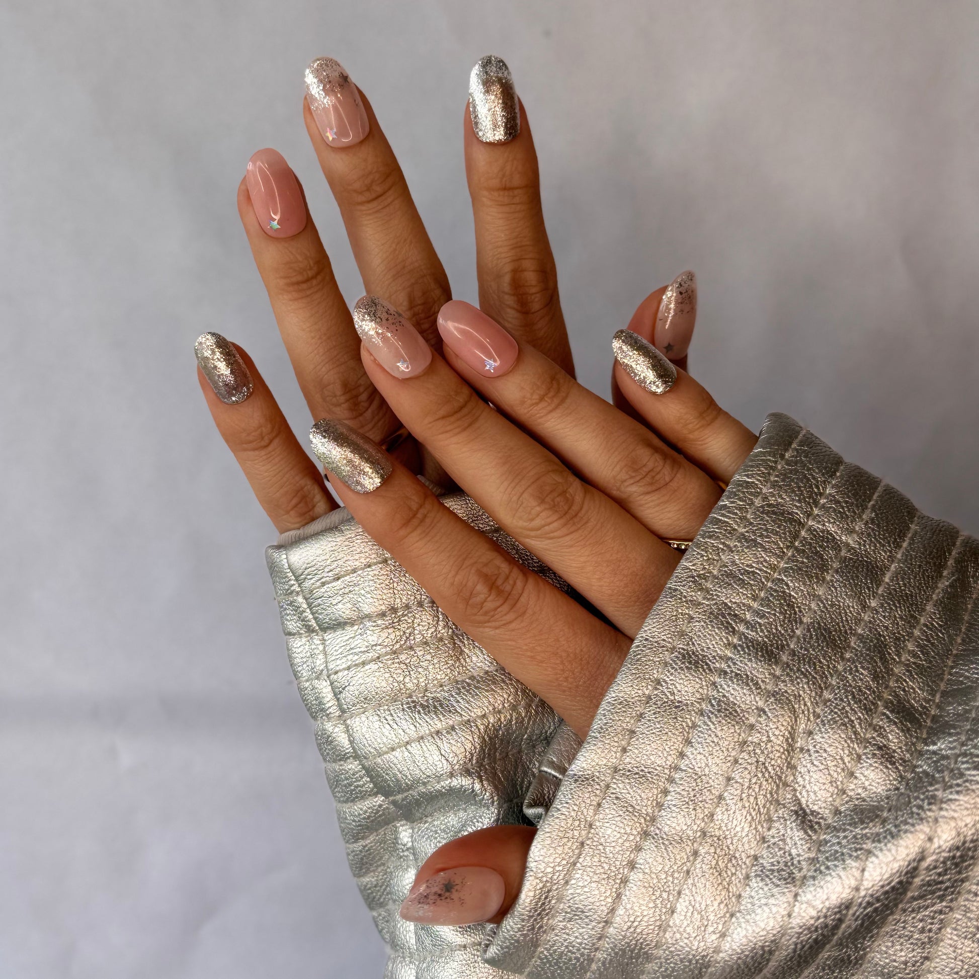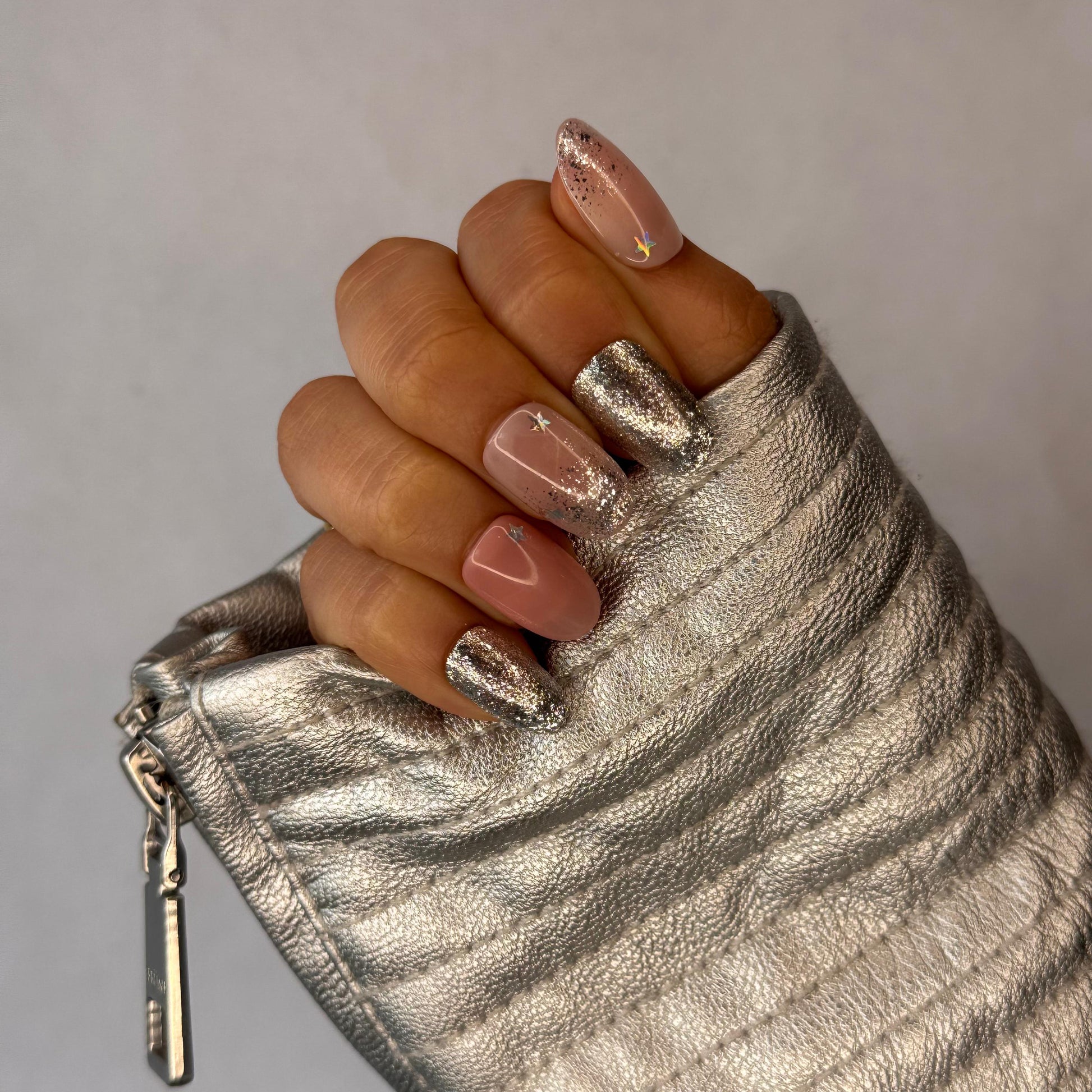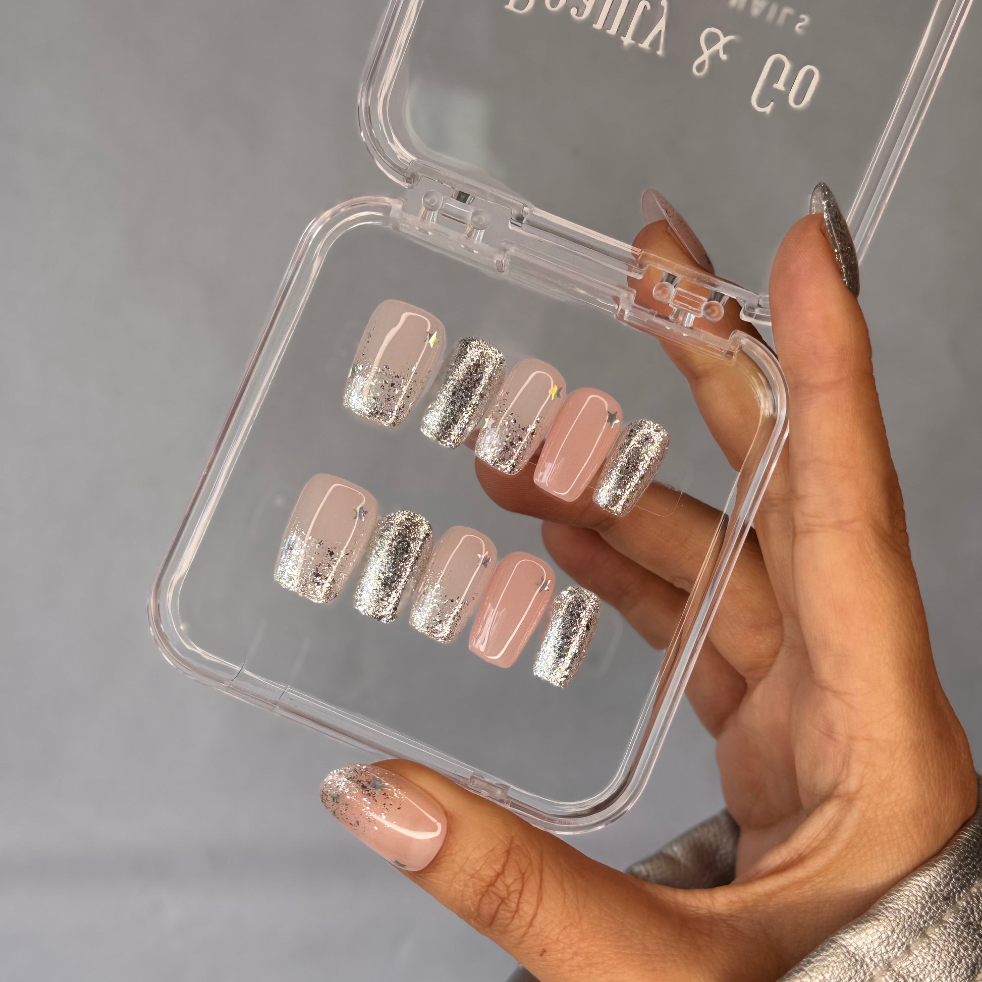 2. Pegar: Aplica una capa uniforme de pegamento en las uñas naturales y en la parte posterior de las uñas Beauty & Go.