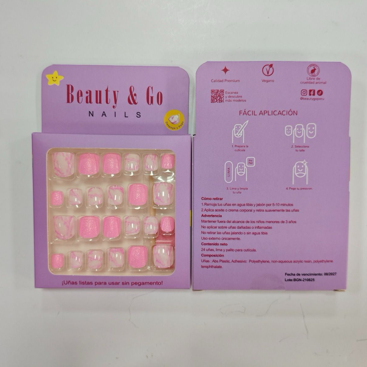 3. Pegar: Despegar el adhesivo protector que viene detras de la uña.