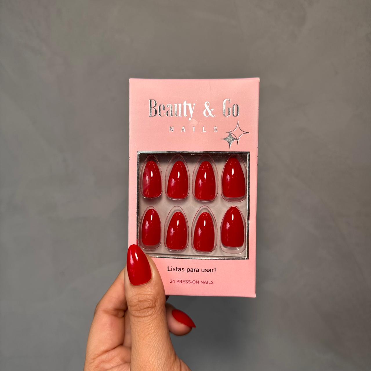 3. Pegar: Aplica una capa uniforme de pegamento en las uñas naturales y en la parte posterior de las uñas Beauty & Go.