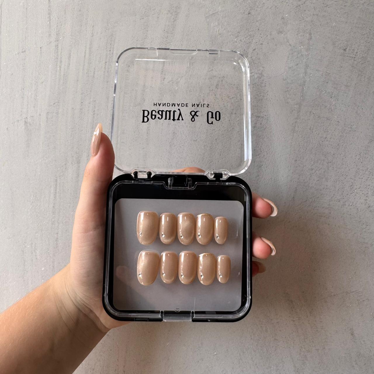 2. Aplicación con Pegamento de Uñas (Opcional): Aplica una capa uniforme de pegamento en las uñas naturales y en la parte posterior de las uñas Beauty & Go.